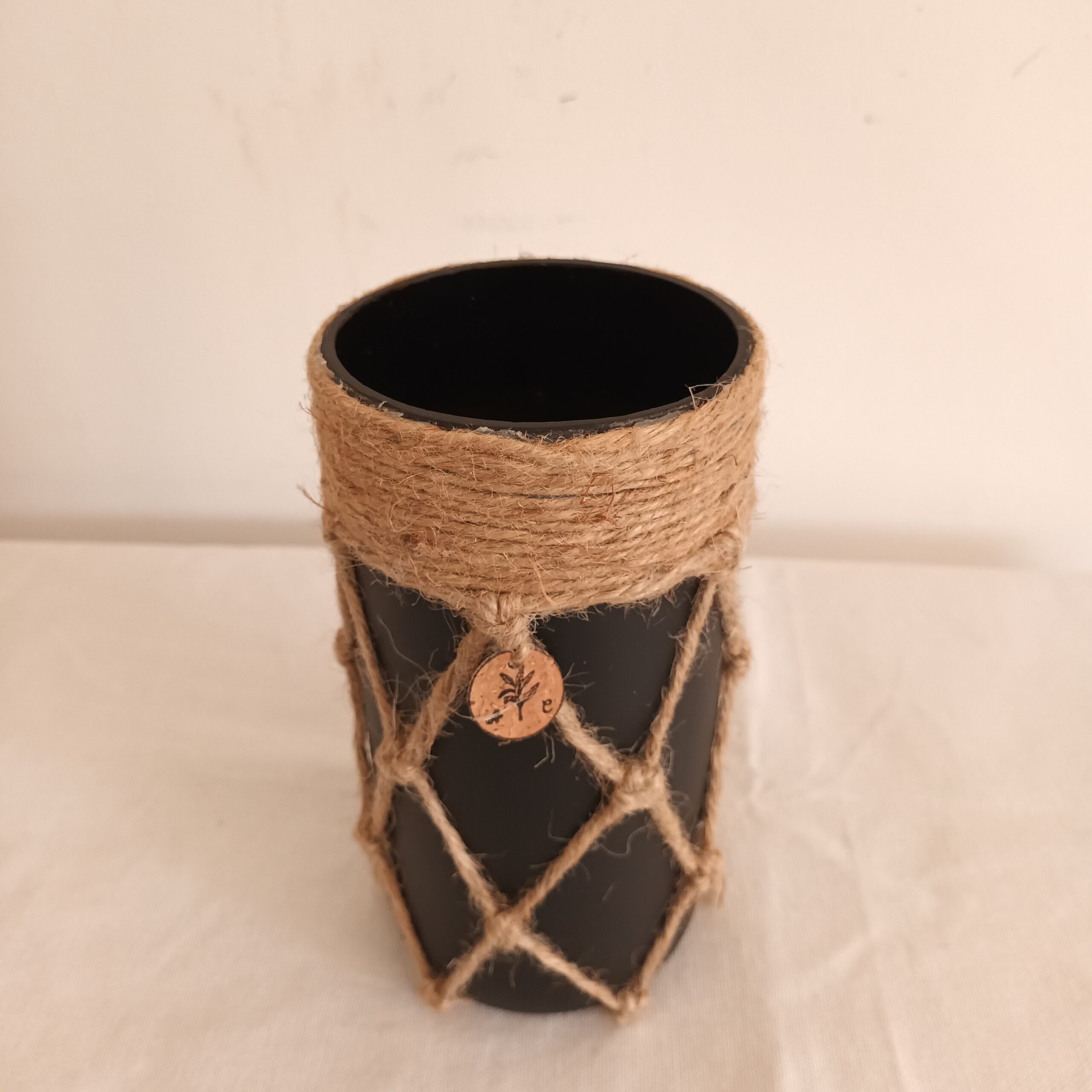 Habillage : corde de jute tressée façon macramé, apportant un style bohème chic